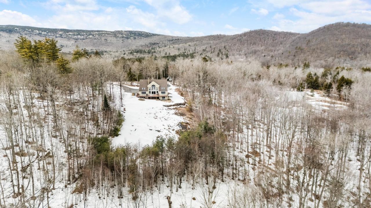 Custom-built Timberpeg post-and-beam home set on 5.02 acres with expansive long-range mountain views visible from all three levels of living space. This 3-bedroom, 3.5-bath home features a living room with a 2-story stone fireplace, cathedral ceilings, and a wall of windows designed to capture the surrounding landscape. The eat-in kitchen includes Corian countertops, a kitchen island, stainless steel appliances and a walk-in pantry. Separate formal dining room is a plus. Beautiful 1st-floor primary bedroom with cathedral ceiling, an en-suite bath with separate whirlpool tub and shower, deck access, and skylights. An office/study, laundry room, and half bath complete the first floor. The upper level includes a media room in the finished attic space, a family room, two bedrooms with walk-in closets, and two full bathrooms. A small library alcove overlooks the living room below, adding additional flexible space. The lower level walkout offers an exercise or game room, storage room, and a utility room with additional storage capacity. Numerous windows throughout the home provide natural light and take advantage of the mountain views. An attached three-car garage with direct entry includes a dedicated workspace area.