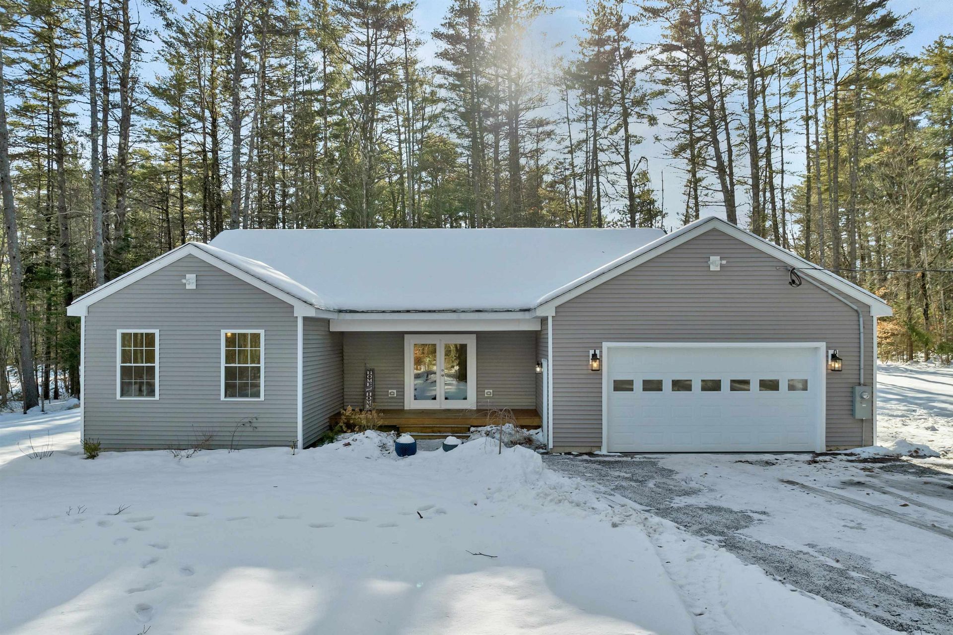 NEW PRICE! Welcome to your New Hampshire getaway - this stunning new construction ranch-style home blends modern comfort with easy, low-maintenance living, making it an ideal second home or vacation retreat. Thoughtfully designed for single-level living, the home offers 3 spacious bedrooms, 2 full bathrooms, and a convenient outdoor shower - perfect after a day at the lake, hiking, or snowmobiling. The open-concept kitchen serves as the heart of the home, featuring granite countertops, a tile backsplash, pantry storage, and plenty of room to gather with family and friends. Luxury vinyl plank flooring runs throughout, offering durability and style for year-round or seasonal use. A dedicated laundry room and generous bedroom closets add to the home's comfort and functionality. The epoxy-coated garage includes a built-in workbench with hot and cold water, ideal for storing outdoor gear, lake toys, or tackling weekend projects. Set on a level, landscaped lot, the property provides a peaceful setting to unwind, entertain, or simply enjoy the natural surroundings. Whether relaxing on warm summer evenings or returning from winter adventures, this home is designed for effortless enjoyment. Ideally located near Province Lake and Ossipee Lake, you'll have easy access to swimming, boating, fishing, and nearby beaches. Outdoor enthusiasts will love the proximity to Green Mountain State Forest, scenic hiking trails, conservation areas, and wildlife preserves. Four-season recreation abounds with snowmobiling, snowshoeing, cross-country skiing, golf courses, and downhill skiing all within a comfortable drive. Whether you're looking for a serene weekend escape or a basecamp for outdoor adventure, this property offers the perfect balance of comfort, location, and New Hampshire charm.