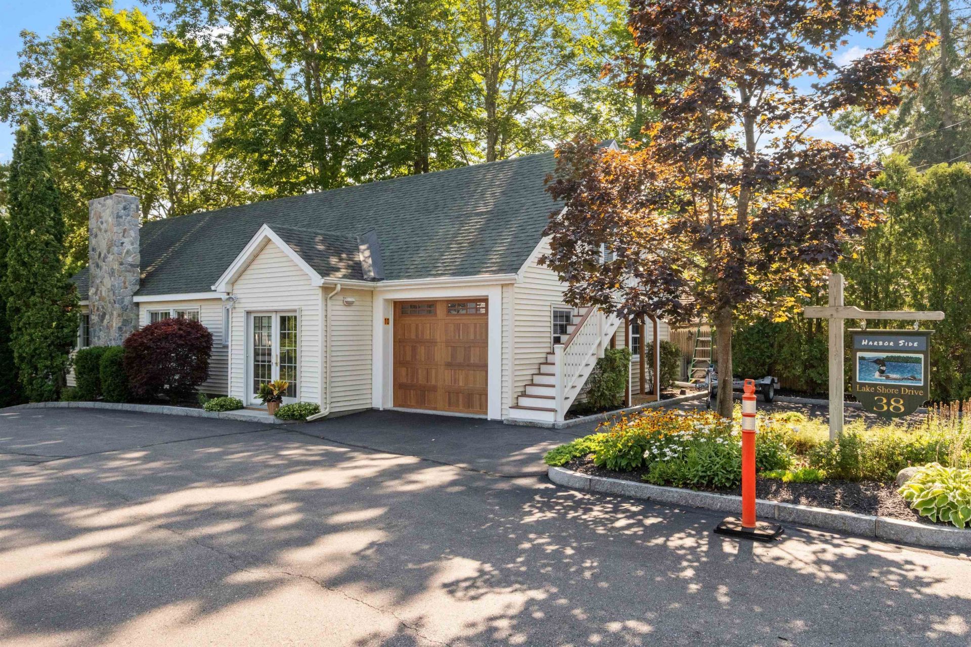 Set on the shores of Lake Winnipesaukee in low-tax Moultonborough, Unit 10 at Harbor Side Cottages offers a rare lakefront opportunity shared withonly three other residences. South-facing views across Center Harbor Bay toward Gunstock Mountain, this property is just a short walk from the shops, restaurants, andamenities of downtown. The community has been beautifully upgraded with features including a walk-in beach, fire pit patio, manicured lawns, and a dedicated end-position 30-foot boat slip. Thoughtfully updated inside and out, the home showcases new real stone accents, a striking multi-story chimney, and a spacious compositedeck with lake views. Inside, the main level offers hardwood oak floors, new carpeting, updated appliances, and refined finishes throughout. The walkout lake level hasbeen transformed into a flexible space ideal for entertaining or hosting guests, with a second kitchen, bath, washer/dryer, and ample room for extra sleeping quarters.Upstairs, a private guest suite includes its own living, dining & kitchen area, bedroom, and full bath. An oversized 1.5-car attached garage adds convenience and storage.Blending timeless lake charm with modern comforts, this thoughtfully renovated home delivers an exceptional opportunity to enjoy the best of Winnipesaukee living in apremier waterfront setting. Blending timeless lake charm with modern comforts, this beautifully reimagined home offers an exceptional opportunity to enjoy the very best of Winnipesaukee.