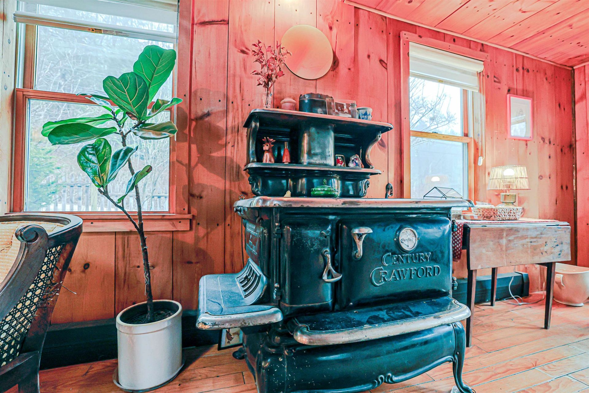 Step into a storybook setting with this enchanting 2-bedroom, 1.5-bath Antique Cape, originally built in 1700 and thoughtfully curated over time. This comfortable and captivating home blends historic charm with intentional, modern upgrades, creating a space that feels both timeless and inviting. Through the front door, a welcoming entryway opens to a light-filled living area featuring vaulted ceilings, skylights, a cozy pellet stove, and a charming ladder leading to a loft above?perfect for quiet moments or creative use. The beautifully renovated first-floor full bath offers a spa-like retreat, complete with a BainUltra Amma soaking tub with Thermomasseur air jet system, chromotherapy lighting, and an overhead Bluetooth speaker. The kitchen showcases elegant soapstone countertops and a slider that opens to a fenced-in side yard, ideal for outdoor enjoyment. A nearby staircase leads to a separate loft adorned with stunning stained-glass interior windows, adding to the home's unique character. Just beyond the kitchen, the second bedroom?currently used as an additional living space?features a custom-built wraparound couch designed to accommodate two twin mattresses, providing flexibility and comfort for guests. A second staircase leads to the private primary bedroom with a half bath. Additional highlights include a utility room with the laundry, boiler, and water heater, a rear entry leading to a shed and lean-to?perfect for workshop or garden storage. Throughout the home, you'll find vaulted ceilings, handcrafted custom details, and ample storage, all surrounded by mature and varied landscaping that enhances the property's natural beauty. Nestled in the picturesque town of Peterborough in the Monadnock Region, this home offers access to scenic outdoor adventures, a vibrant arts and music community, and a welcoming small-town atmosphere with activities and resources for all ages.