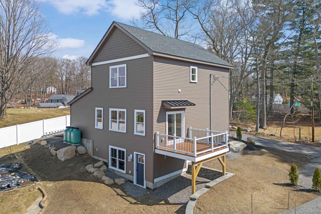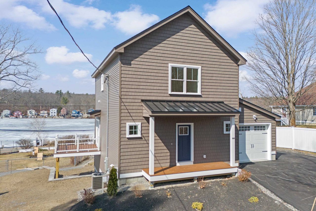 NEW CONSTRUCTION with stunning lake and sunset views over Shadow Lake in Salem, NH?plus optional beach/lake access just steps away. This thoughtfully designed home features an open-concept main level with a spacious living and dining area that flows seamlessly to a private deck overlooking the water?perfect for relaxing or entertaining. The kitchen is a standout with a 10' quartz island, stainless steel appliances, propane range, vented hood, microwave drawer, tile backsplash, and a generous walk-in pantry. A convenient half bath completes the first floor. Upstairs, the primary suite captures spectacular lake views and includes a walk-in closet and a beautifully appointed bath with a custom multi-head tiled shower and dual-sink vanity. The second level also offers a second bedroom, full bath, and dedicated laundry. The walkout basement provides excellent potential for future finished space or ample storage. An oversized one-car garage with high ceilings and direct entry adds flexibility and convenience. Built with quality and attention to detail, this home includes hardwood and tile flooring, quartz countertops, matte black fixtures, recessed lighting, and more. This fully detached single-family condominium (one of two units) has its own septic system, utilities, and well pump - no shared building components. Only the land and drilled well are common elements. Units 1 and 2 owners share land liability policy cost annually. Ideally located south of Route 111 near the Massachusetts border, with easy access to I-93 and I-495. Association beach access optional, annual fee $40 Agent interest. Access to this house is on Dennison Ave (rear of 96 Shadow Lake lot). Take Sylvan Ave, left on Dennison, house is on left. Use 27 Dennison Ave for GPS.